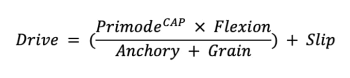 Here, Flexion appears directly in the numerator. That means when Flexion drops, the system’s overall Drive output can collapse, even if everything else is aligned.