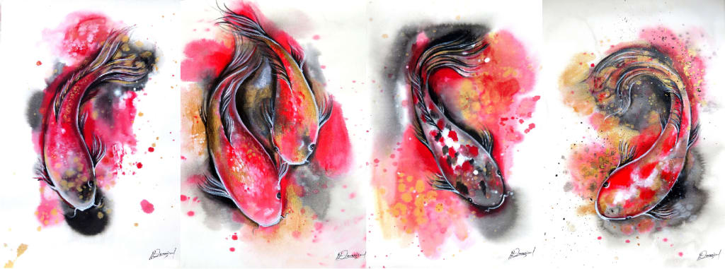 - The stories behind our painting《The symbolism of five koi - The five blessings》