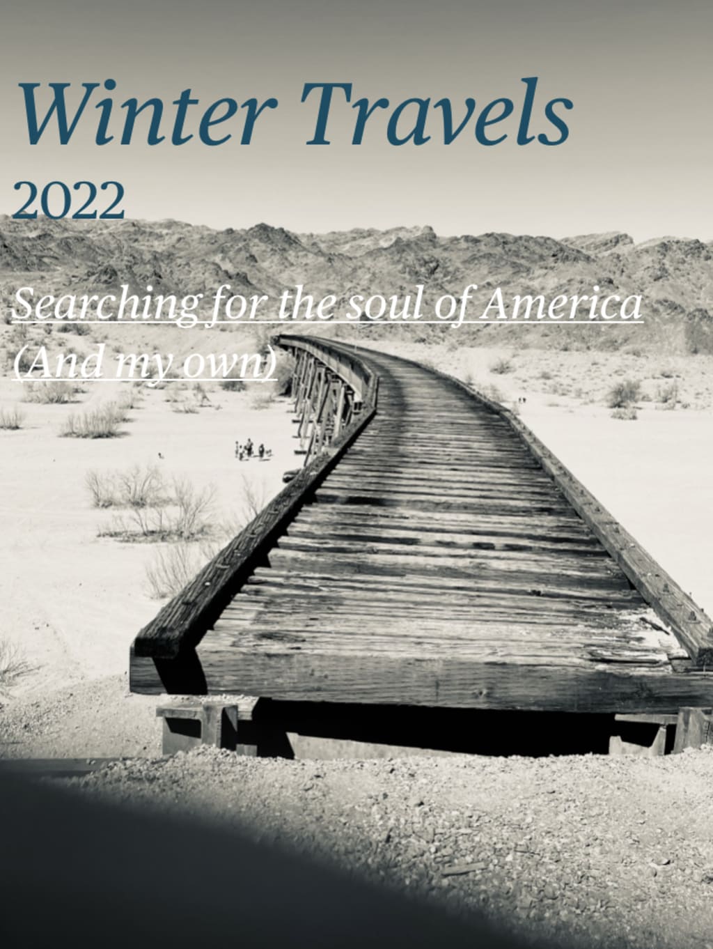 Part travelogue, part retelling of my own American story, part searching internally and externally for an understanding of what American life is today. No answers, only questions.