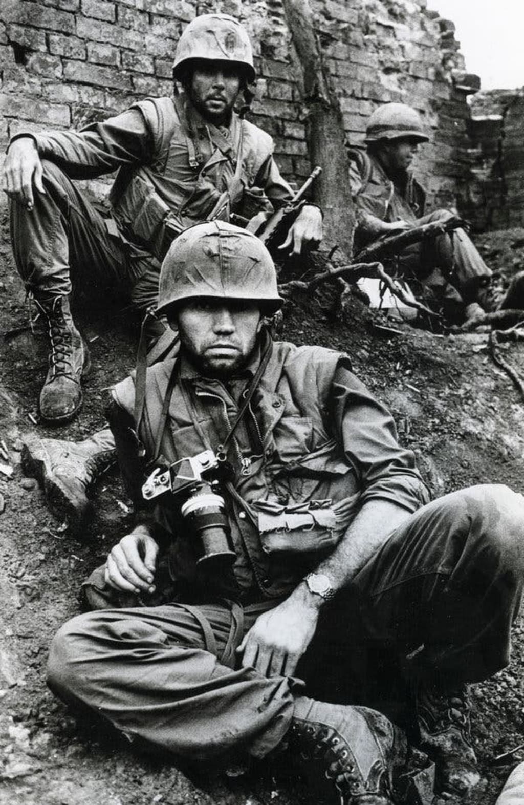 Our troops had the enemy on the run towards me, but I wasn't a soldier, I was a combat photographer. As the enemy troops approached the trench, I aimed my camera through the pile of the two dead bodies on top of me and captured a fantastic shot of these three enemy soldiers being shot and blood flying out of there chest. Some of it hit me, but I kept shooting pictures as these enemy troops' bodies fell in the trench around me.