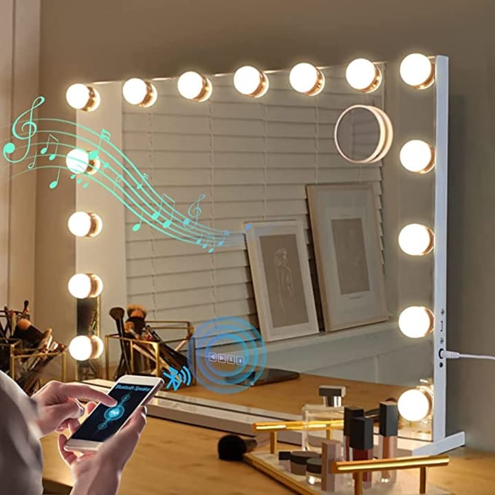 The HANSONG Bluetooth Hollywood Vanity Mirror with Lights is a versatile and convenient accessory designed for those who want to perfect their beauty routine. This mirror has a perfect size of 22.8"x 18" that is ideal for a medium-sized bedroom dressing table. It's not too small that you can't see yourself while doing your makeup, and it's not too bulky to take up too much space on your dressing table.