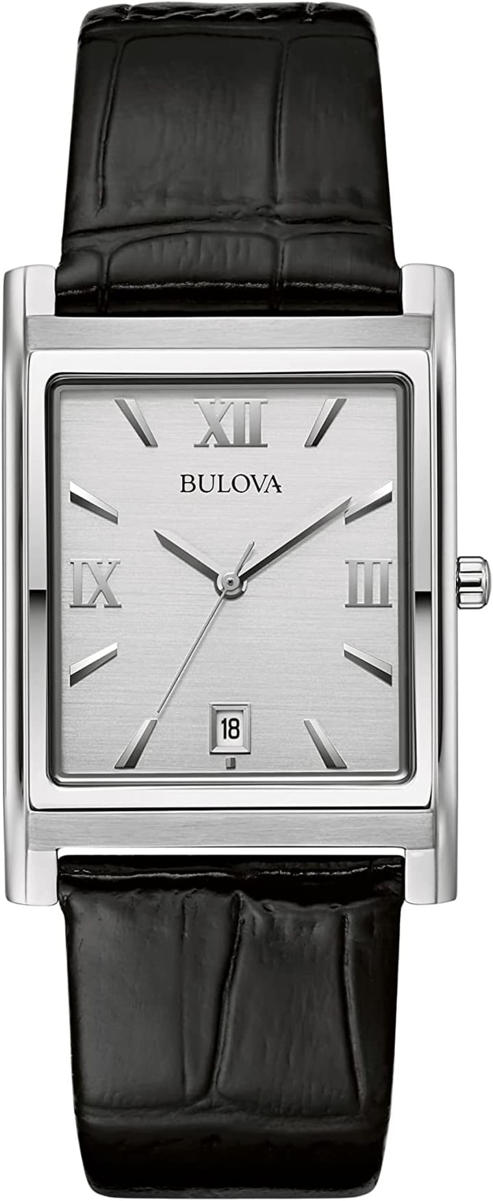 Next in line is this Bulova with a 29mm cage and a vintage aesthetic look dial which gives a really elegant look to it, the case is really slim so it looks great with dress shirts or your business casual outfit, don´t be scared of the size it is perfect for a man wrist and it gives a really classic look with that authentic leather strap, and I bet you will catch the eyes of the people looking at it since it has a really similar look to a more expensive watch (Cartier Tank) but this one will not break your bank.