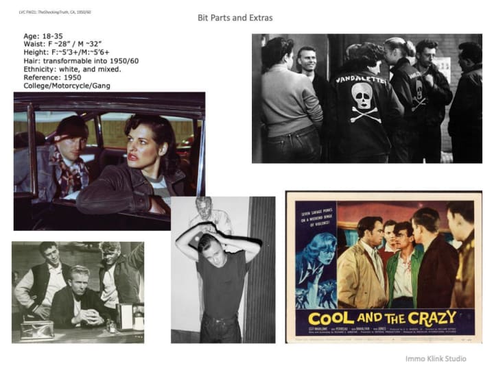 The company is seeking collaborators and talent for "The Shocking Truth," a period photoshoot set in the 1950/60s for Levi's clothing brand. See the details below.