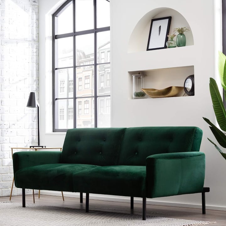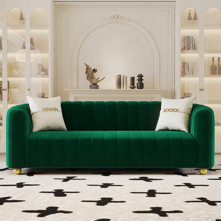 Embrace the lush greens of October with an emerald green mid-century sofa that bring a touch of nature indoors. The clean lines and retro designs make these sofas a statement piece that beautifully complements modern aesthetics. Its vibrant color adds a fresh and lively touch to your living space.