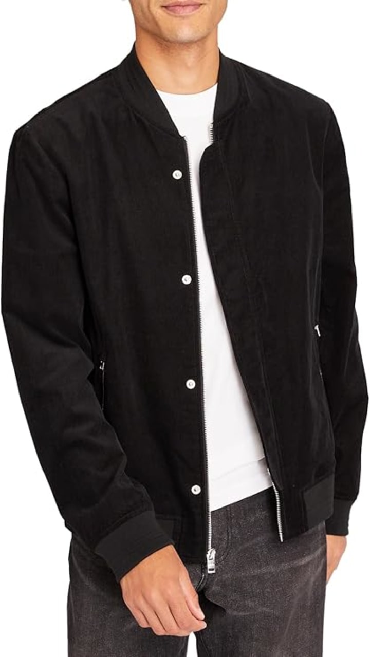 The Club Monaco Men's Cord Bomber Jacket is perfect for men who appreciate a mix of classic and contemporary styles. Its corduroy material and sleek design make it a standout piece for autumn 2024, offering a balance of sophistication and comfort.