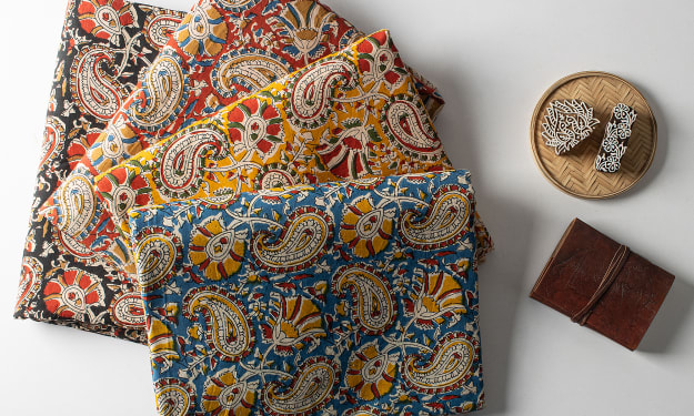 Derived from the words “kalam” (pen) and “kari” (work), this involves hand-painting or block printing to create mythological and nature-inspired designs.