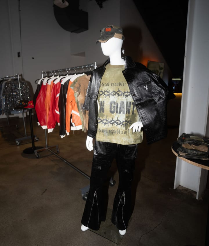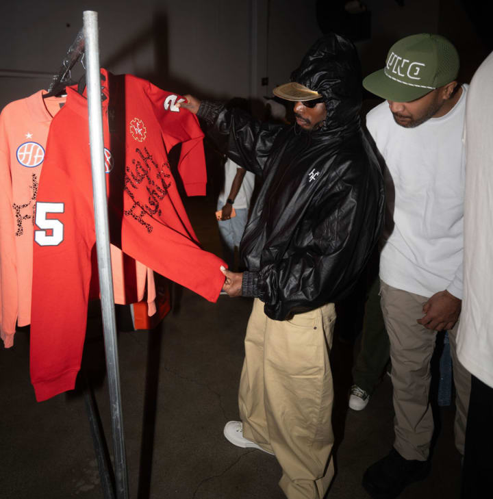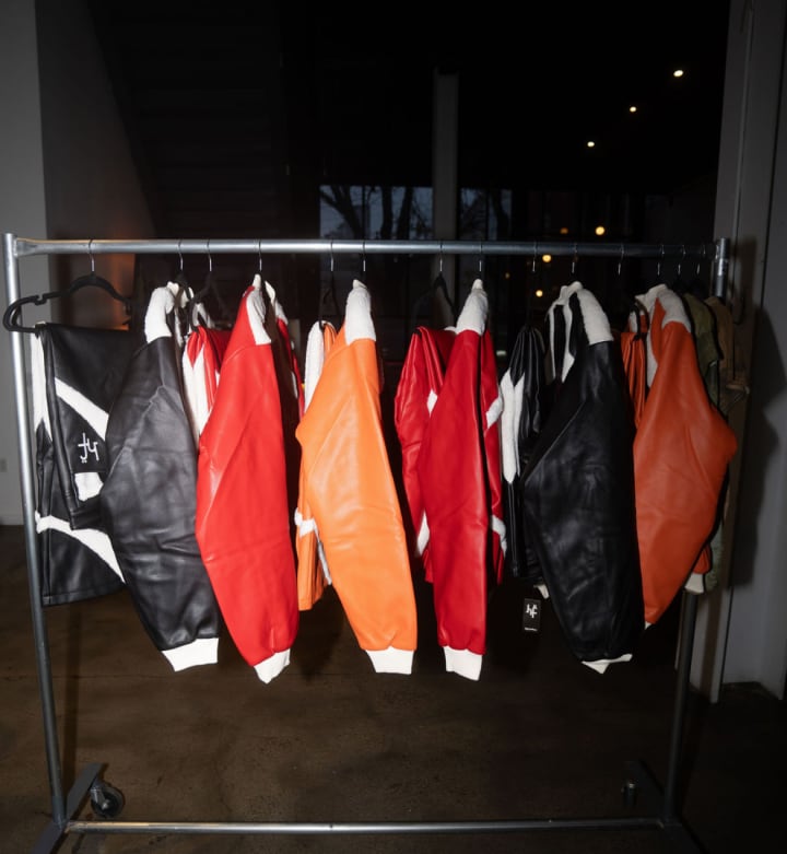 What stood out most to me was the strength of The Disciples Collection. Every piece told a story. The line balanced simplicity with boldness, offering something for every type of fashion disciple in the room. The collection featured classic black and white tees that gave off a timeless streetwear edge. The vibrant color polos brought life to the space with tones that popped under the lights, ranging from deep reds to electric oranges. The premium colorway varsity jackets were instant favorites, standing out as statement pieces that mixed collegiate flair with luxury craftsmanship.