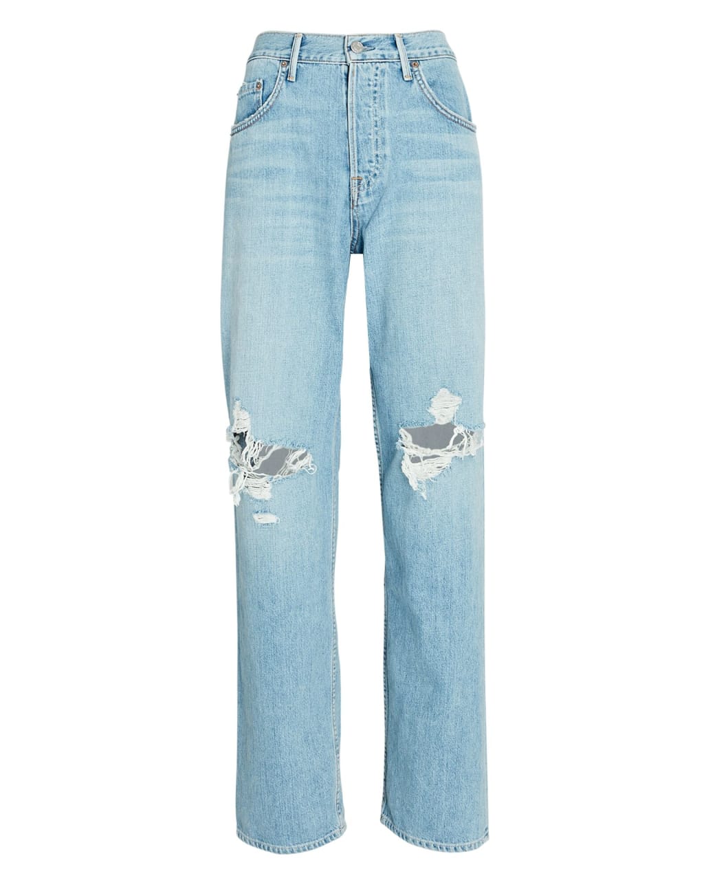 Wear ripped with a black swoop necklace top along with blue boyfriend denim. You will look chic and modern by wearing this outfit. All you have to do is to find the perfectly tight ripped jeans to accentuate your body but wear a large-sized denim jacket. You can wear dark-colored or white sneakers to complete the look.