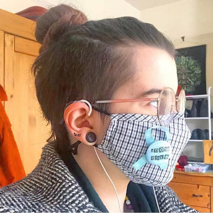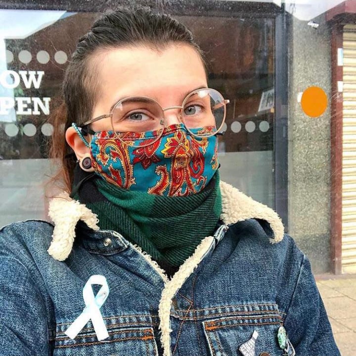 If you have a favourite broach, pin it to your mask and show it off! I have a little snowflake pin that I stick to my masks because it matches being allergic to cold. I also have a Cold Urticaria awareness ribbon that I stick to it. You can dress these masks up however you want to. If you can’t find a design that you want, make your own! Or you can use them as a canvas for awareness like I do, or to reassure the public that it’s OK, it’s just allergies, it’s just for your own protection and they don’t need to worry about you.