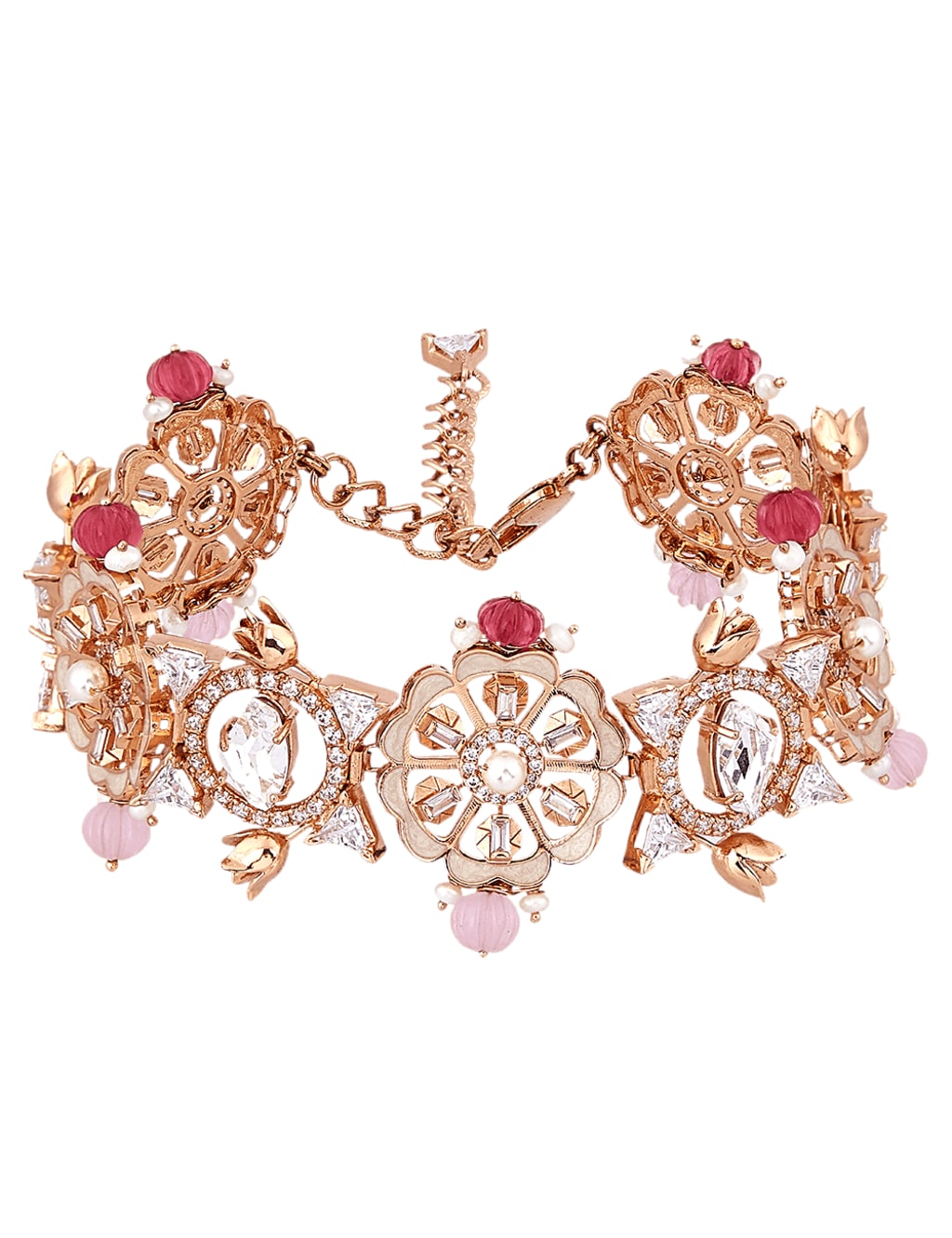 Rose gold jewelry is a blend of gold, copper, and sometimes silver. The copper is what gives rose gold jewelry its distinct pink hue, while the silver helps to balance the mixture and prevent it from being too dark or too light. The exact ratio of gold to copper and silver can vary, but generally, rose gold is made up of around 75% gold, 22.25% copper, and 2.75% silver.