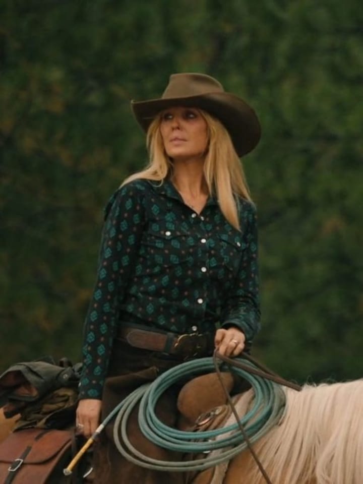 With the continued success of "Yellowstone" and the fifth season bringing fresh twists to the plot, Beth Dutton's fashion choices have once again taken center stage. One piece that has captured the attention of fans is the Yellowstone S05 Beth Dutton Black & Green Print Shirt.