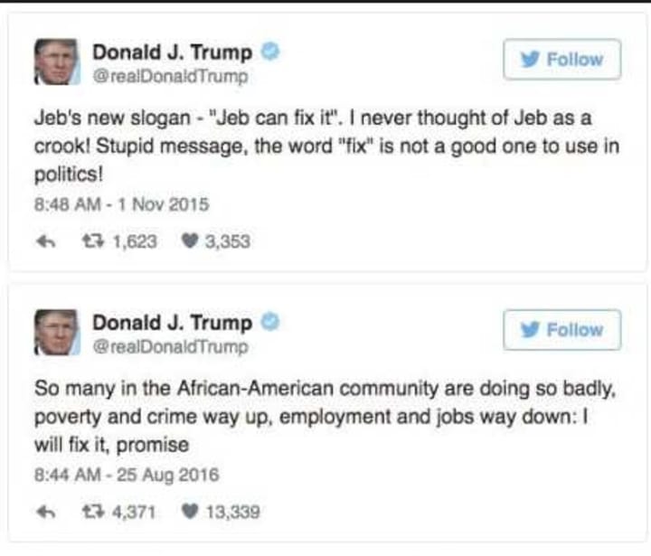 Well, Mr. Trump, you must have taken a chapter (or two) from their books because, your presidential 'campaign' commanded the attention of most prime news networks, and became a trending model on most major social platforms. It seems you knew just the right things to say in order to burn the bridges we were once attempting to restore. Whether we were with or against you, it became impossible to avoid discussing you, debating you, cursing you, all while dancing to the beat of your song like the puppets we have been influenced to be - you just did what any honest and fair man would do, which was use the unrestricted tools that were provided to you.