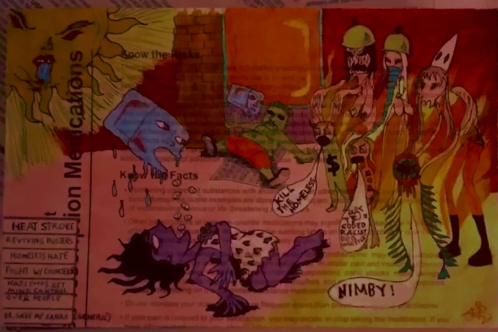 The overwhelming and unrelenting hatred for people like us — and that includes us makes the air taste like aluminum. I don’t want us to be “the exception” to my friends when it’s far to easy for anybody to end up in a mess. There was too much hatred in the media, from those who’d turned their backs on us from already broken city services ground to a halt by COVID-19. Grinding teeth in my ears made me realize the Nazi C****s who'd hounded me prior to me last long-term hospitalization had made a breakthrough. They’re no longer simply interested in me just offing myself for their personal amusement. They want a mass genocide on the poor and they’ve figured out how to latch on to hosts who might not ordinarily go for it.