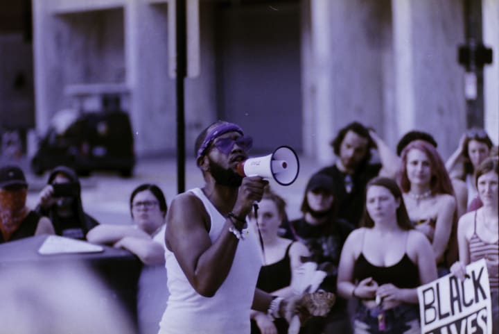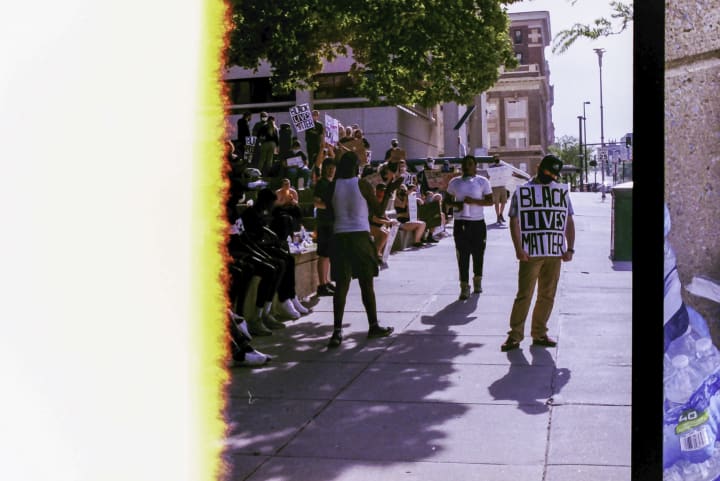 James Scurlock, a young Black American man, was shot and killed May 30th, 2020. The man who killed him? Jake Gardner. James Scurlock had been out that night at the BLM protest. Jake Gardner had been outside that night in front of the bar he owned. He was out there with a concealed weapon that he had an expired permit for. Do you know where I'm going with this? Jake Gardner was released with no charges. Nothing. Not even manslaughter, concealed carry permit violation, or for firing gunshots within the Omaha city limits. The man pictured above emotionally told us how James Scurlock was only a year younger than him and how that could've been him that night. He described that this is what Black Americans face every day.