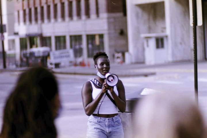 When I arrived at the protest, I saw a woman. Or I should rather say I heard a woman. The woman, who I believed organized the protest, had brought a megaphone. She spoke to the crowd through the bullhorn and explained that she had purchased it from Amazon so we can hear the black voices of our community. "This megaphone is only for black voices. You can come up and share anything you'd like. We want to hear your voices". I was looking forward to hearing black voices and learning more, however, mainstream media showed up.