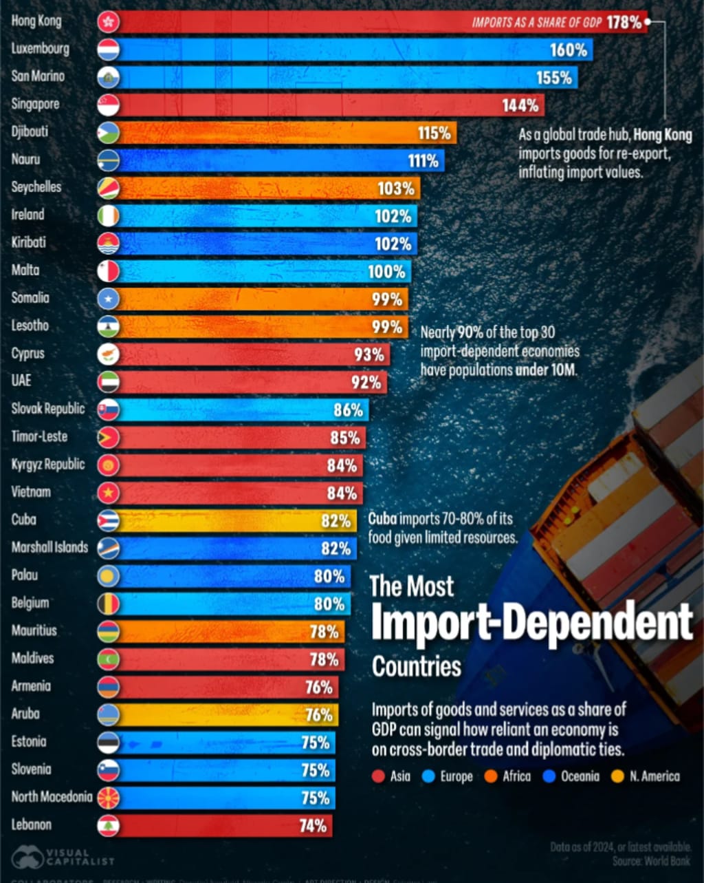 The World’s Most Import-Dependent Countries, Ranked