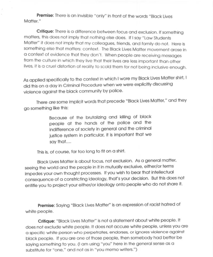 Taken from a Law Professors Response to a BLM Shirt Complaint