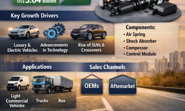 United States Automotive Air Suspension Market Overview The United States Automotive Air Suspension Market is entering a decisive growth phase as automakers and consumers increasingly prioritize ride comfort, vehicle performance, and intelligent mobility features. According to industry estimates, the market is expected to reach US$ 3.64 billion by 2033, rising from US$ 2.17 billion in 2024, registering a compound annual growth rate (CAGR) of 5.91% from 2025 to 2033.