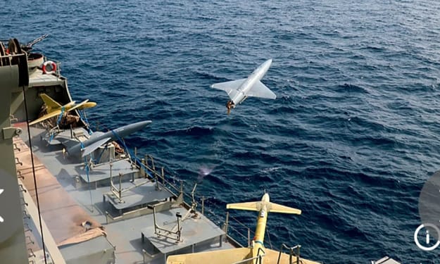 US Navy Shoots Down Iranian Drone in Arabian Sea. AI-Generated.