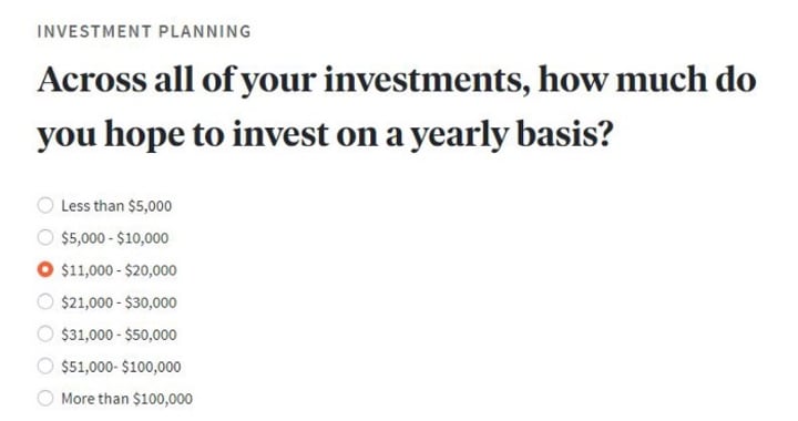 So I went back and checked off the “6–10 years” category instead and was moved up to a “Core” account level which requires an initial investment of at least five thousand dollars.