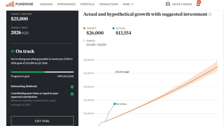 One of the things that I like about Fundrise is that it urges you to set a goal and then lets you know how much you should continue investing in an effort to reach it.