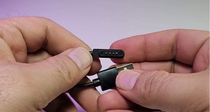Now go next part,is the operating instructions,so this way you will be able to play MP3 on it or more. There are some notes and also product parameters and care and cleaning,that is about it.It comes with this little charging cable.Now as you can see,it has four pins,and this is how you will be able to chart your earbuds in this case or headphone. The other side is USB type A or we call it USB 2.0.It also comes with this little rubber band and you can connect it to the headphones.It's very easy to process.