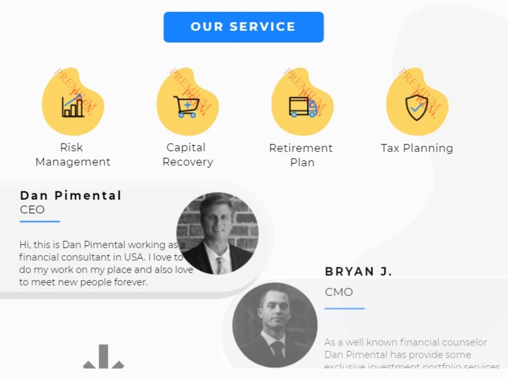 Risk Management: Financial consultant will guide to invest money and minimize the risk factors to increase profit value. The best part of his is risk management services without losing capital. Dan Pimental is such a great financial advisor. He has been provide innovative investment plan with more profit specially people who are planning retirement.