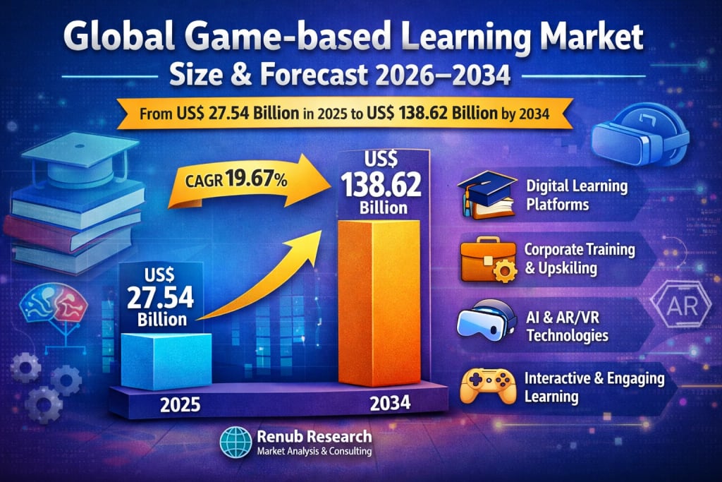 The global game-based learning market is entering a powerful growth phase as education systems, enterprises, and individual learners increasingly turn toward interactive and technology-driven learning models. According to Renub Research, the market is expected to expand from US$ 27.54 billion in 2025 to US$ 138.62 billion by 2034, registering an impressive compound annual growth rate (CAGR) of 19.67% during 2026–2034.