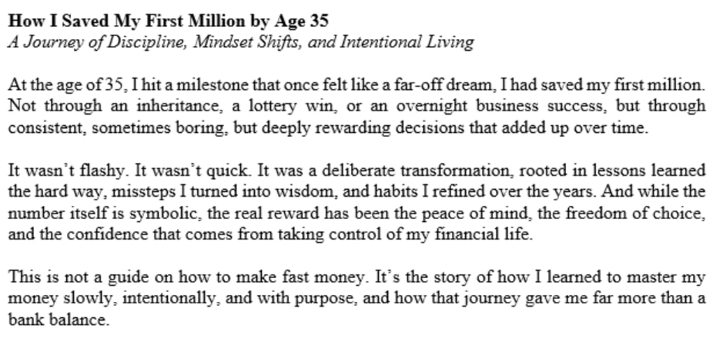 At the age of 35, I hit a milestone that once felt like a far-off dream, I had saved my first million. Not through an inheritance, a lottery win, or an overnight business success, but through consistent, sometimes boring, but deeply rewarding decisions that added up over time.