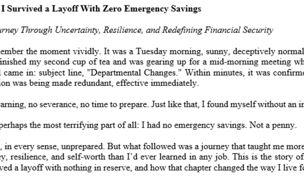 I no longer panicked at surprise expenses. I no longer felt ashamed of my background. I had built a life of stability without a degree, without inheritance, and without luck, just deliberate, focused effort.