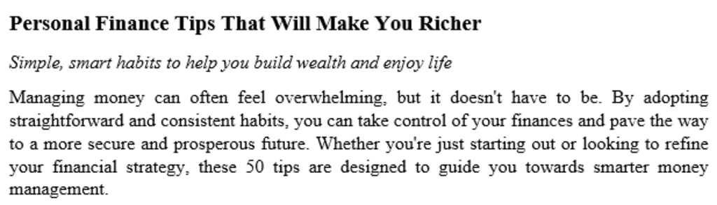 Managing money can often feel overwhelming, but it doesn't have to be. By adopting straightforward and consistent habits, you can take control of your finances and pave the way to a more secure and prosperous future. Whether you're just starting out or looking to refine your financial strategy, these 45 tips are designed to guide you towards smarter money management.
