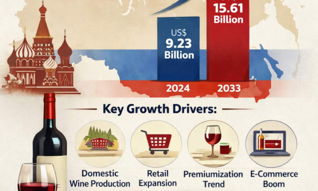 Introduction The Russia wine market is entering a transformative phase marked by rising domestic production, shifting consumer preferences, and a renewed focus on quality and origin. According to market estimates, the Russia wine market is anticipated to grow from US$ 9.23 billion in 2024 to US$ 15.61 billion by 2033, expanding at a compound annual growth rate (CAGR) of 6.11% during 2025–2033. This steady rise reflects not only increasing wine consumption but also the structural evolution of the industry itself.