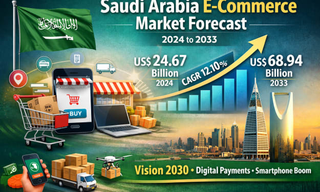 Introduction: A Digital Retail Revolution in the Kingdom Saudi Arabia’s retail landscape is undergoing a powerful transformation. Once dominated by traditional brick-and-mortar stores, the Kingdom is now witnessing a rapid shift toward digital commerce, fueled by technology adoption, government-backed digital reforms, and changing consumer behavior. According to Renub Research, the Saudi Arabia E-Commerce market was valued at US$ 24.67 billion in 2024 and is projected to grow at a compound annual growth rate (CAGR) of 12.10% from 2025 to 2033, reaching an impressive US$ 68.94 billion by 2033.