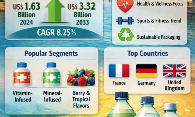 Europe Functional Water Market Overview The Europe Functional Water Market is entering a decisive growth phase, driven by shifting consumer preferences toward healthier, low-calorie, and nutrient-enriched beverages. Valued at US$ 1.63 billion in 2024, the market is projected to grow at a CAGR of 8.25% from 2025 to 2033, reaching approximately US$ 3.32 billion by 2033. This impressive expansion reflects not only changing hydration habits but also a broader transformation in how European consumers view everyday beverages.