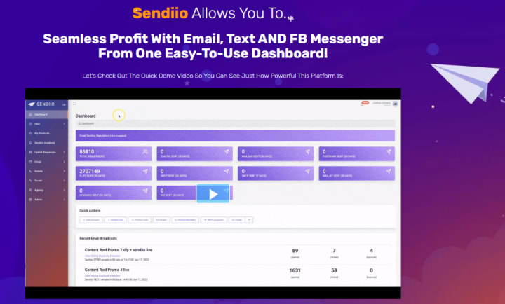 Sendiio 3.0 Agency is the latest version of the popular email, text, and Facebook marketing platform. With Sendiio 3.0 Agency, you can send unlimited emails, texts, and Facebook messages to your subscribers, all from one central location. Whether you're a business owner, marketer, or agency, Sendiio 3.0 Agency offers a complete solution for all your marketing needs.