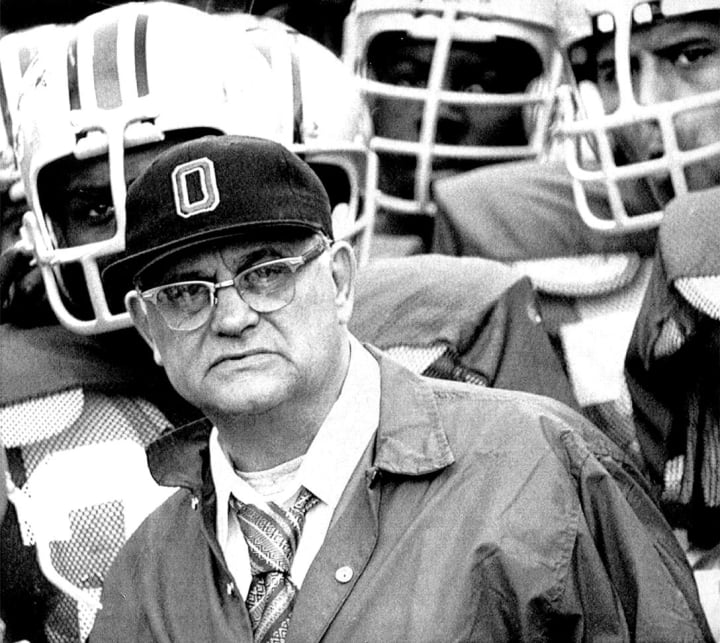 An intense rivalry between the Buckeyes and the Michigan Wolverines brewed during his last decade of coaching at Ohio State. From this, the phrase "The Ten Year War" was dubbed. With a career record of 238-72-10, he was inducted into the College Football Hall of Fame in 1983.