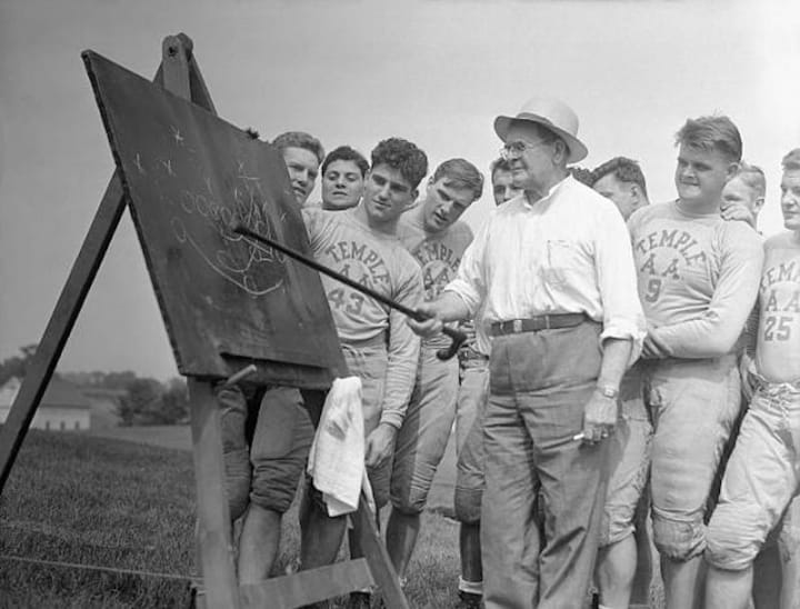 Inducted into the College Football Hall of Fame in 1951, Warmer created a premier football program called the Carlisle Indian Industrial School. Plus, he coached Pittsburg and Stanford to national championships, Pittsburg three times, and Stanford once. His college football record was 319-106-31, coaching the University of Georgia, Iowa Agricultural College and Model Farm, Cornell and Model Farm University, Carlisle University, Temple University, and Cornell University.