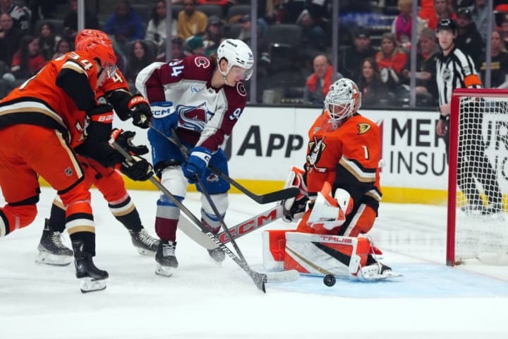 So Game #81 was in the books, and the next night was Game #82, becoming the first team this season to completely play all 82 games. The Avalanche headed to The OC for a meeting with the Anaheim Ducks, who were definitely not playoff bound, but their season has given their fans some hope for something positive on the horizon. In this go-around, Scott Wedgewood was in net against Lukas Dostal, and the first period definitely wasn't noisy like the opening frame in LA. First PP went to the Avs very late in the first, that was killed off, and later on, Mason McTavish broke the ice with 1:08 left. So it was 1-0 Ducks after 20 minutes.