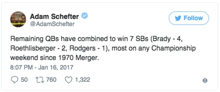 You can make the case that the four best teams are left standing. You can also say the four best quarterbacks of all the playoff teams lead them. In fact, three of these quarterbacks have won a combined seven Super Bowls.