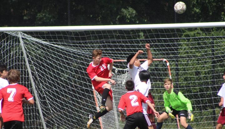 Containing on defense and keeping the pressure on at the other end, Sanabria and Rivera choreographed a number past the mystified Clarkstown defense with 15 minutes remaining. Sanabria handled a high bouncing clear and lifted just above his defender. Rivera then took another high bounce, which he was able to loft over the outstretched mitts of the helpless goalie.