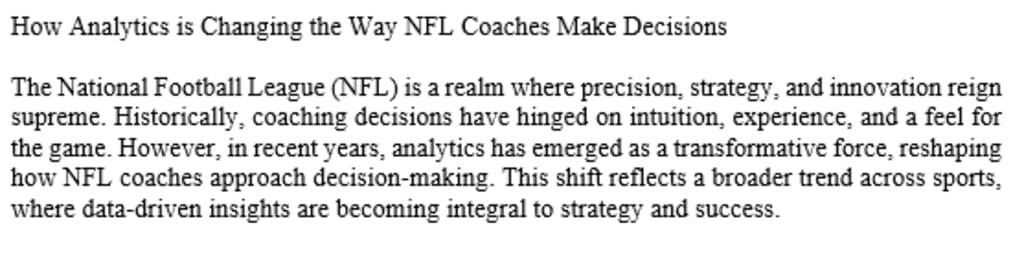 The National Football League (NFL) is a realm where precision, strategy, and innovation reign supreme. Historically, coaching decisions have hinged on intuition, experience, and a feel for the game. However, in recent years, analytics has emerged as a transformative force, reshaping how NFL coaches approach decision-making. This shift reflects a broader trend across sports, where data-driven insights are becoming integral to strategy and success.