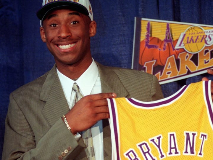 Straight out of high school, Kobe Bryant was the 13th pick in the 1996 NBA draft to the Charlotte Hornets. However, he was immediately traded that night to Los Angeles where he began his 20-year career as a Laker.