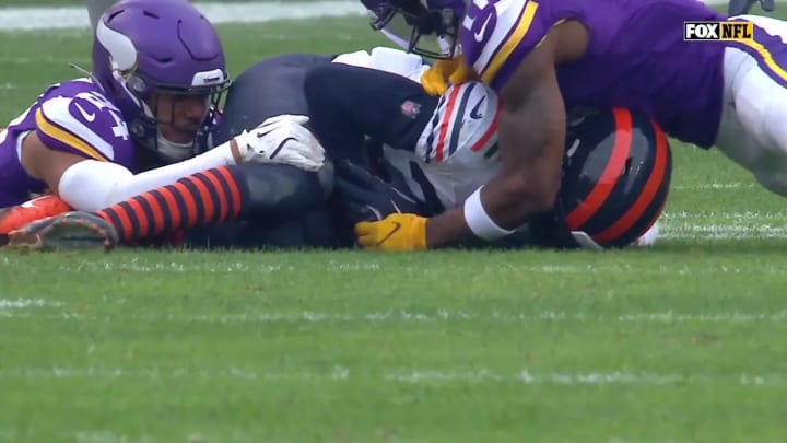 Oh look, more fun with special teams! So we were also treated to an insane NFC North battle between the Minnesota Vikings and the Chicago Bears, the latter coming off a loss due to a blocked field goal. Well, the Bears decided to get that part over with first. Yeah, another blocked field goal. They did have a lead, but the Vikings took over, and it looked like it would be over. They were up by 10 late in this game. Bears cut it to three with a touchdown, but it was onside kick time. In a wild twist of fate, the ball bounced off a Vikings' foot, and the Bears recovered!