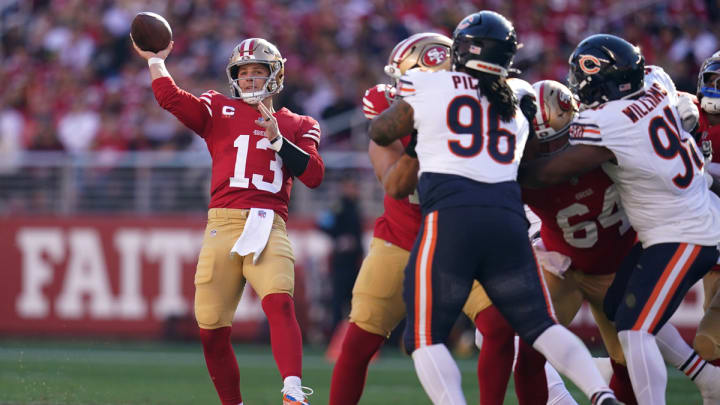 Four yards. That's how much offense the Chicago Bears mustered in the first half against the San Francisco 49ers. Four yards. A false start penalty is more than that. Mind you, this was the Bears' first game after firing Matt Eberflus as head coach. The 49ers were still beaten, battered, and fried, yet they were still able to make mincemeat out of this pathetic team. Though, let's get something straight: it's only because the NFC West is so tepid that the Niners even have a puncher's chance, and even then it's a bit on the faint side, as the Niners are still in last place.