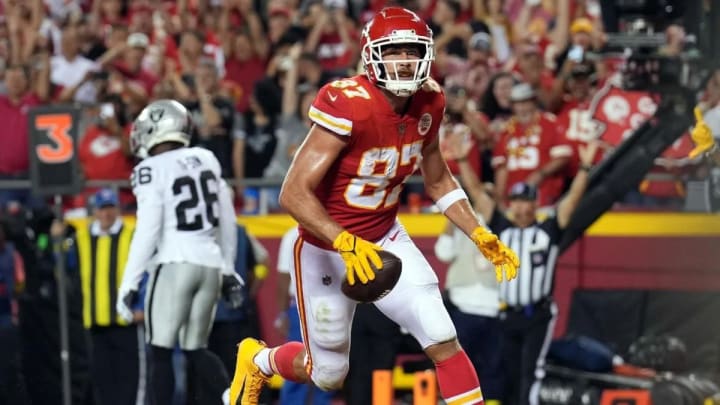 Monday Night Football featured an AFC West battle between the Kansas City Chiefs and the Las Vegas Raiders, though the Raiders got off to a surprisingly dominant start, leading 17-0 early. However, that's when Travis Kelce started taking over. Only 25 receiving yards, but he scored four touchdowns--literally every touchdown the Chiefs scored was Kelce's. KC ended up taking the lead, and would have a 30-23 advantage later on. However, Davante Adams scored his second TD of the game to bring the Raiders to within one, but for some reason, they decided to go for two with nearly four and a half left. It wasn't successful, and even though KC went three and out, the Raiders' last drive ended up failing after Adams' apparent reception on third down was ruled out of bounds. KC won 30-29 to improve to 4-1, while the Raiders dropped to 1-4.