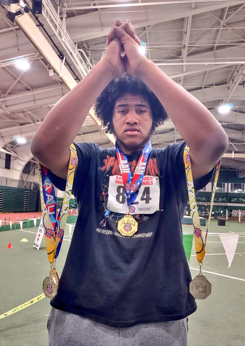 Pharoahe Zaire became a two-time All-American after travelling from Columbus, Ohio to compete in the AAU 14-Under National Championship for the third time. Pharoahe earned a national championship in the shot put for the second time in four seasons.