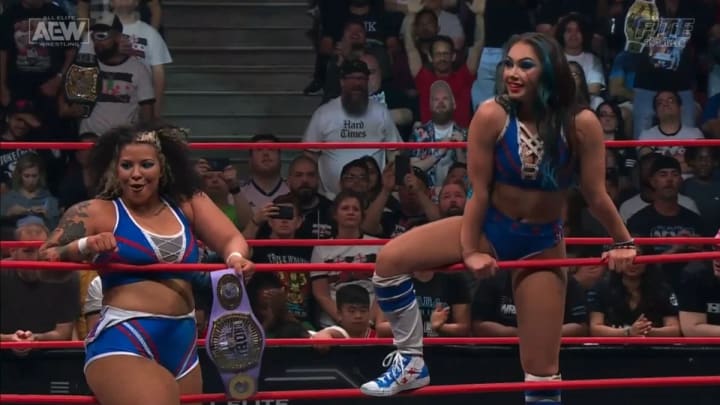 On to a Chicago native who I was actually happy to see on Collision: Skye Blue. Earlier this week, Skye Blue had her shot at the AEW Women's World Championship on Dynamite, but she came up short against champion Toni Storm, mainly thanks to Toni's "Outcasts" cohort, Ruby Soho. A post-match assault also brought out Willow Nightingale to come to her aid, and it led to that tag team bout. Similar to the Dynamite match, Skye Blue's mother (who was referred to as "Mama Blue") was in attendance, and after being attacked by the Outcasts on Dynamite, she struck back against them (literally) on Collision, which saw Skye and Willow victorious.