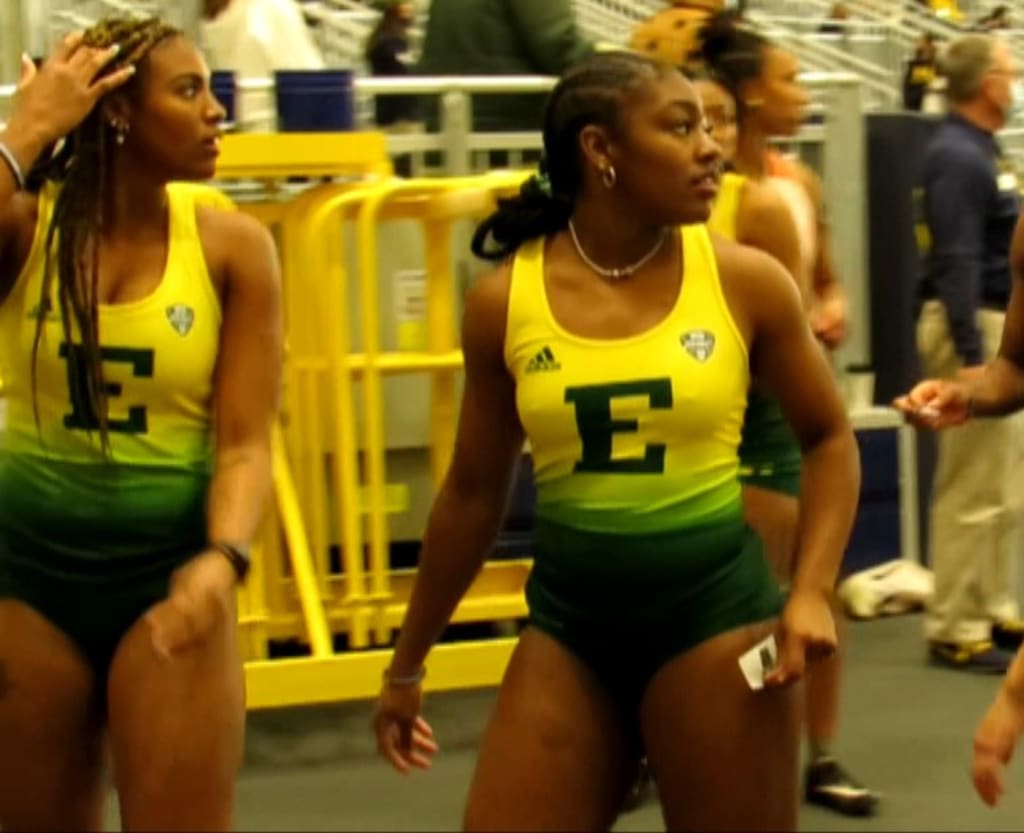 Wade's teammate Kilani Harvey is a transfer athlete who competed for Morehead State las season. At the Wolverine Invitational she placed second in the 60 meters with a time of 7.58. Other notable performances for Eastern Michigan were Nina Ward's win in the high jump at 1.71, Ariel Floyd's dominant victory in the weight throw with a mark of 18.82 and Alisha St. Louis' triple jump first place finish at 11.31.