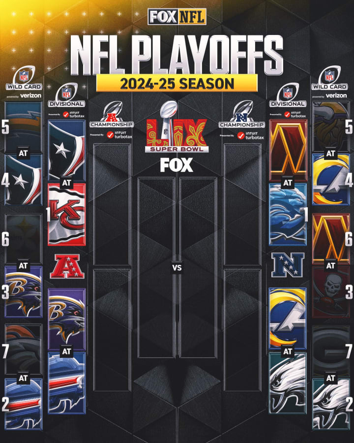 And with that, the NFL's Elite Eight is all set. The Divisional Playoff will kick off on Saturday, January 18 with the Kansas City Chiefs hosting the Houston Texans on ESPN and ABC, followed by the Detroit Lions hosting the Washington Commanders on Fox. On Sunday, January 19, the Philadelphia Eagles will host the Los Angeles Rams on NBC, followed by the Buffalo Bills hosting the Baltimore Ravens on CBS. The road to New Orleans marches on!
