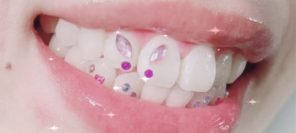 Teeth jewelry is the process of fixing tiny gems, crystals, or other adornments on the outer surface of a tooth. The process is non-surgical and cosmetic. It's commonly done on the front upper teeth to make them visible when you smile.